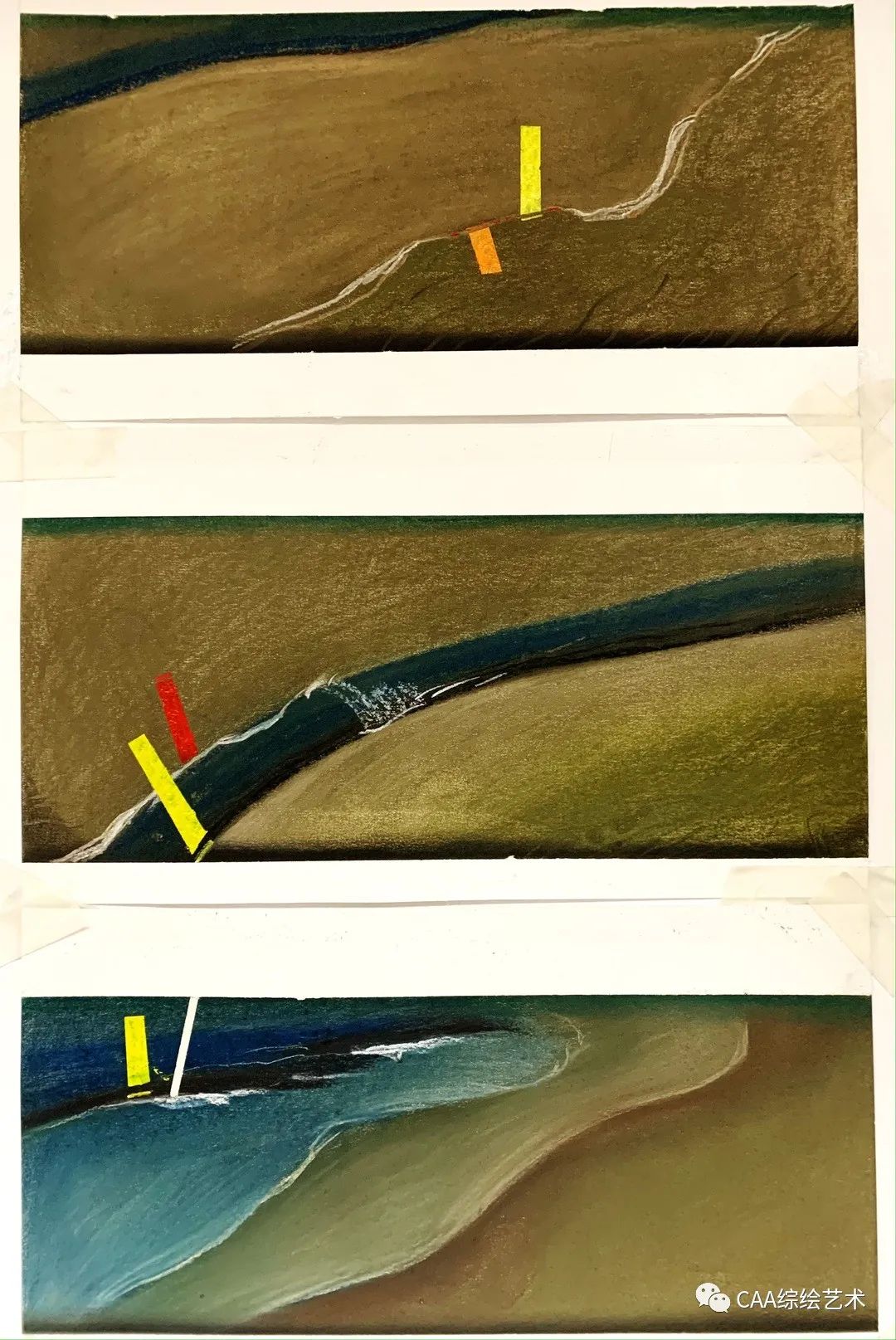 季风、潮汐、海浪、礁石习以为常的组合,日渐乏味的海边,在下乡第四天的时候写生了这个作品。原来你所见到的每一个普通的元素(比如浪花)它蕴含着独特的味道和激荡,创作过程中更是发现了现实环境给予的自己的张力,作品表达了当时感受。