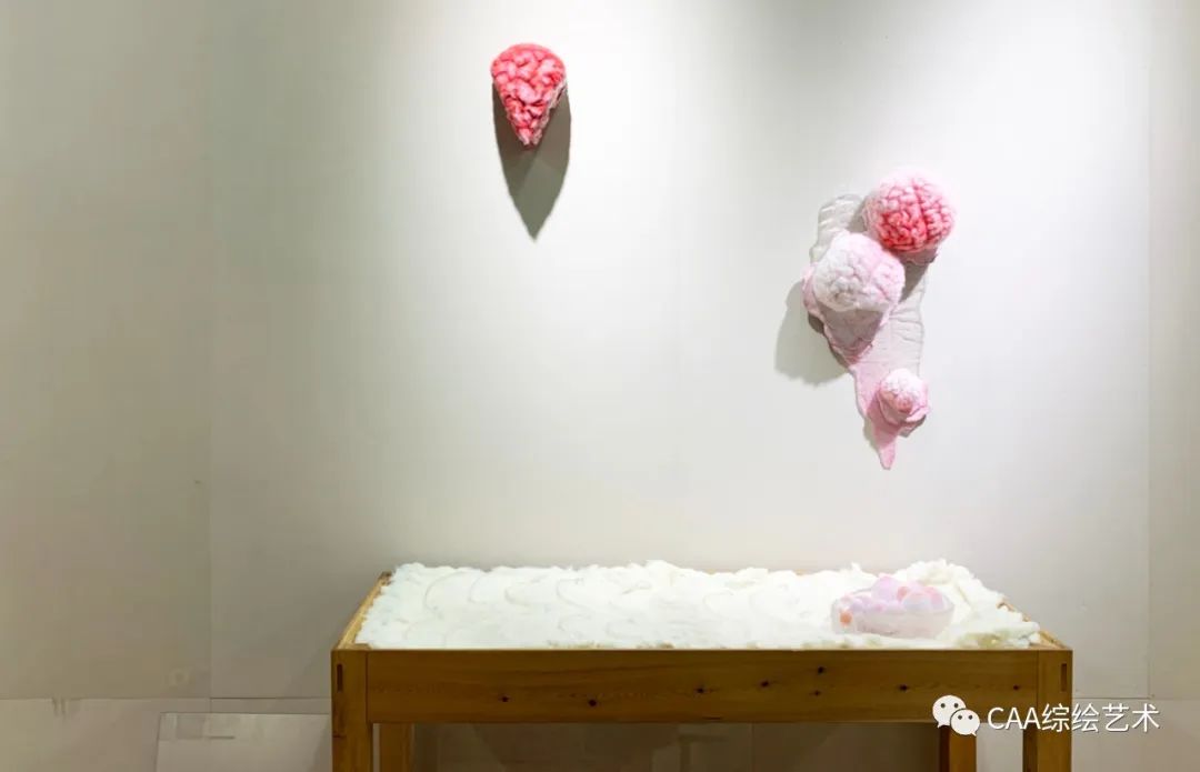 意在通过羊毛、树脂、泡沫等材料的运用,表现与实际病症相对立的柔和感。
